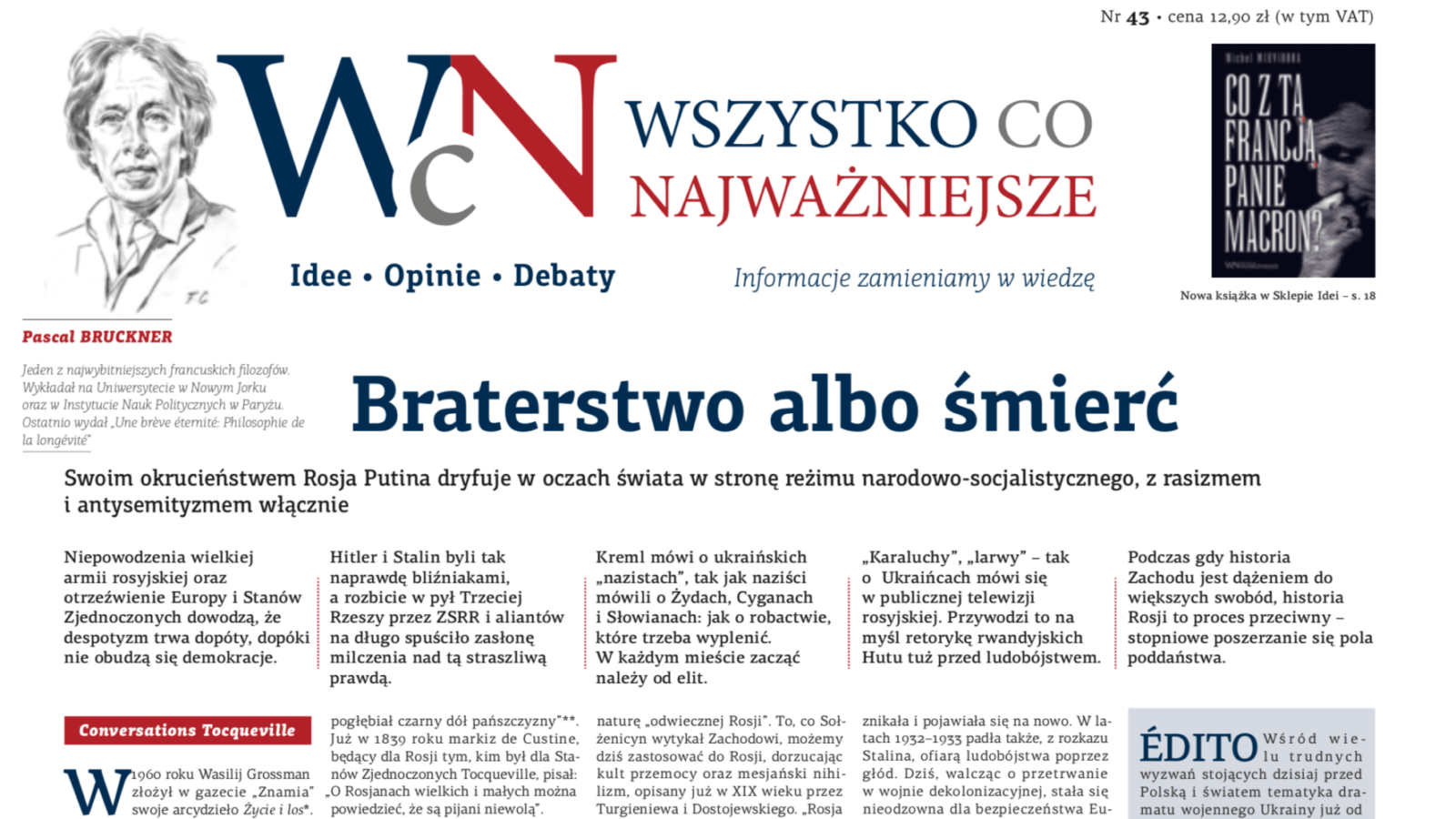 Najnowszy, 43. numer miesięcznika „Wszystko co Najważniejsze” pt. „Braterstwo albo śmierć” jest już do nabycia. Autorzy wzywają do zdecydowanych działań, zarówno poprzez przeciwstawienie się rosyjskiemu imperializmowi, jak i skuteczną walkę z chorobami na świecie.