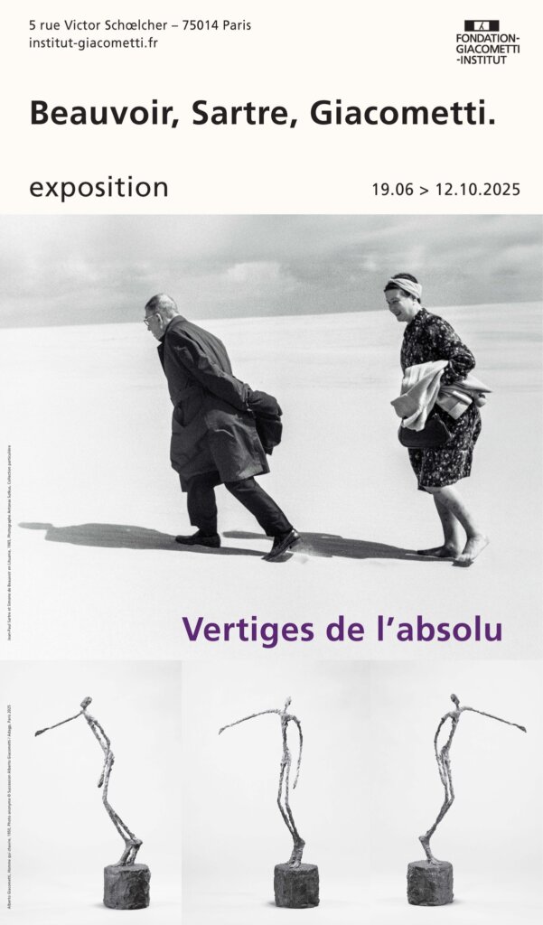 Beauvoir, Sartre, Giacometti. Vertiges de l’absolu, do 12 października 2025 r. Institut Giacometti, 5 rue Victor Schoelcher (14. dzielnica), metro Denfert-Rochereau