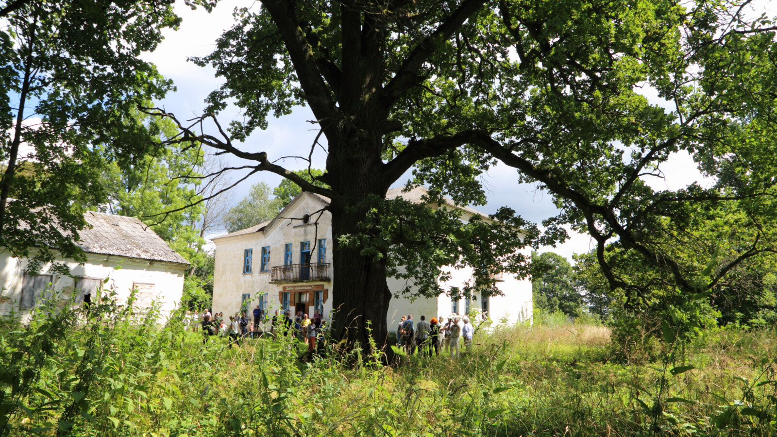 Fot. Hruszowa, (Białoruś), 29.07.2017. Dąb Dewajtis – jedna z nielicznych pozostałości po dawnym majątku Marii Rodziewiczówny. Tuż obok tablica pamiątkowa poświęcona pisarce. Fot. Joanna Borowska / Forum