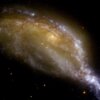 Jak opisują naukowcy, NGC 6745 to w rzeczywistości trzy galaktyki, które znajdują się trakcie procesu zderzenia się. Fuzja tych obiektów trwa już od setek milionów lat i jeszcze się nie zakończyła. Oddziaływania grawitacyjne łączących się galaktyk wpływają gwiazdy, gaz i materię, przez co obiekt ten ma niezwykle nieregularny kształt.