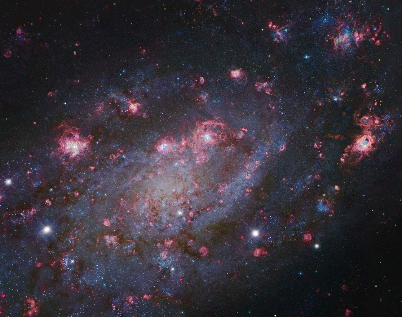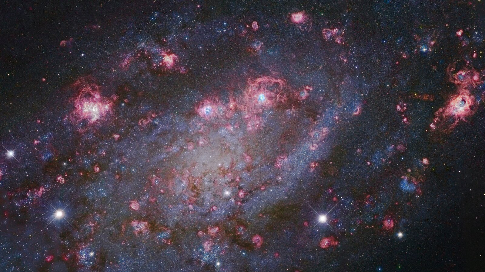 .Jak tłumaczą badacze z NASA, na obrazie z Kosmicznego Teleskopu Hubble’a widoczna jest galaktyk spiralna z poprzeczką znana jako NGC 2403. Jest ona oddalona o około 8 milionów lat świetlnych od Układu Słonecznego i znajduje się w gwiazdozbiorze Żyrafy. Galaktyka została odkryta 1 listopada 1788 roku przez astronoma Williama Herschela. NGC 2403 ma około 80 tysięcy lat świetlnych średnicy. NGC 2403 należy do grupy galaktyk M81.