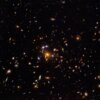 Naukowcy za pomocą Kosmicznego Teleskopu Hubble’a zobrazowali gromadę galaktyk zobaczoną jako SDSS J1004+4112, znajdującą się w gwiazdozbiorze Małego Lwa.