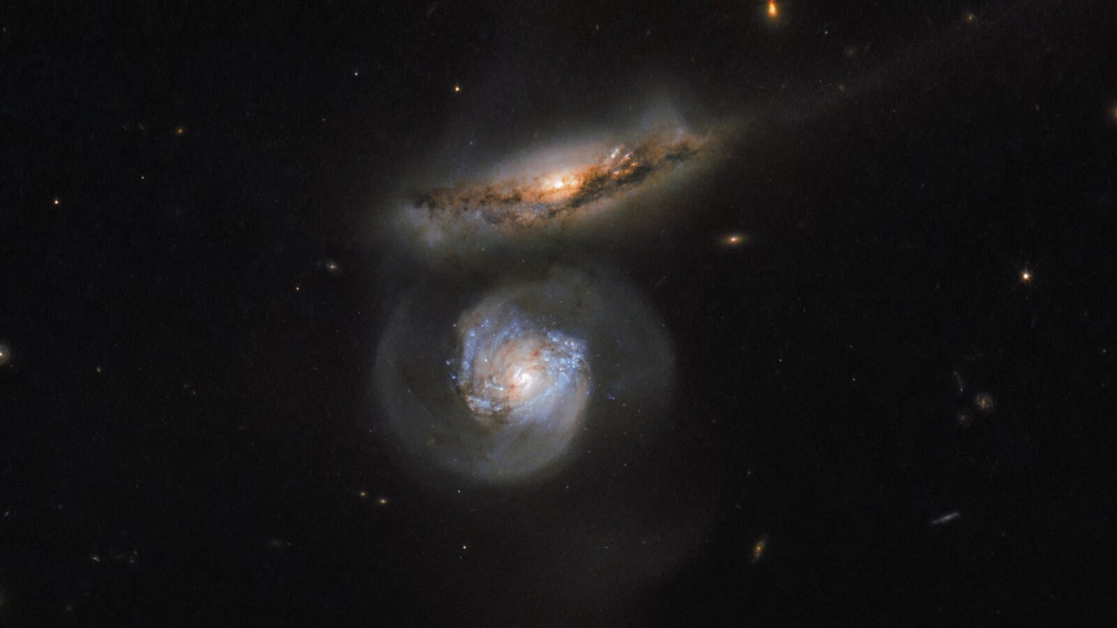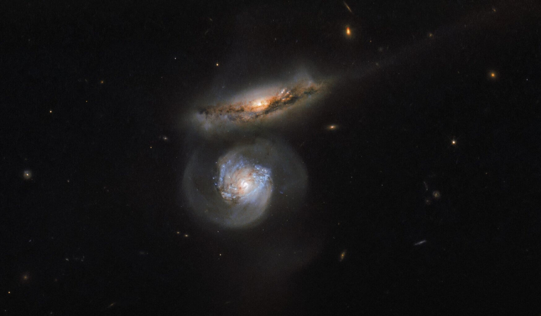 Naukowcy za pomocą Kosmicznego Teleskopu Hubble’a uchwycili parę zderzających się galaktyk oznaczoną jako NGC 5765, znajdującą się w gwiazdozbiorze Panny.