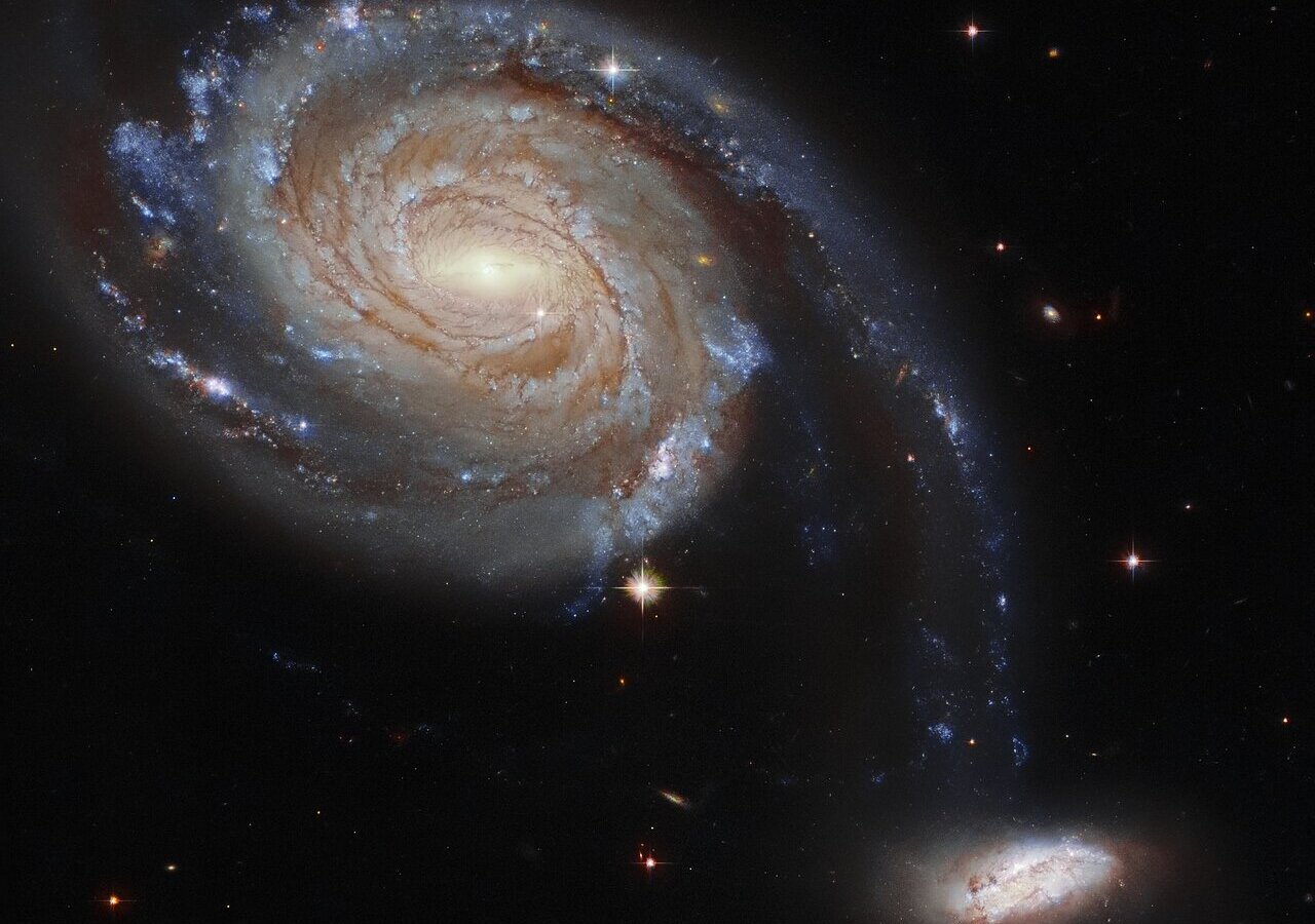 Jak opisują naukowcy, Arp 86 składa się z dwóch galaktyk NGC 7752 i NGC 7753. NGC 7753 jest dużą galaktyką spiralną, która dominuje na obrazie z Teleksopu Hubble’a, a NGC 7752 jest jej mniejszą towarzyszką, widoczną po prawej stornie. Obiekty te wydają się być połączone strumieniem gwiazd, gazu i pyłu, który powstał przez wzajemne oddziaływania grawitacyjne.