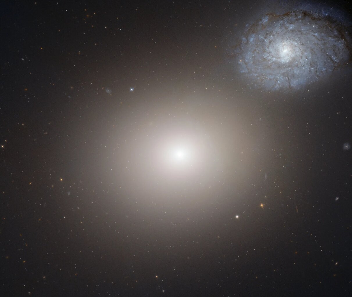 Naukowcy za pomocą Kosmicznego Teleskopu Hubble’a zobrazowali galaktykę eliptyczną oznaczoną jako Messier 60, znajdującą się gwiazdozbiorze Panny.