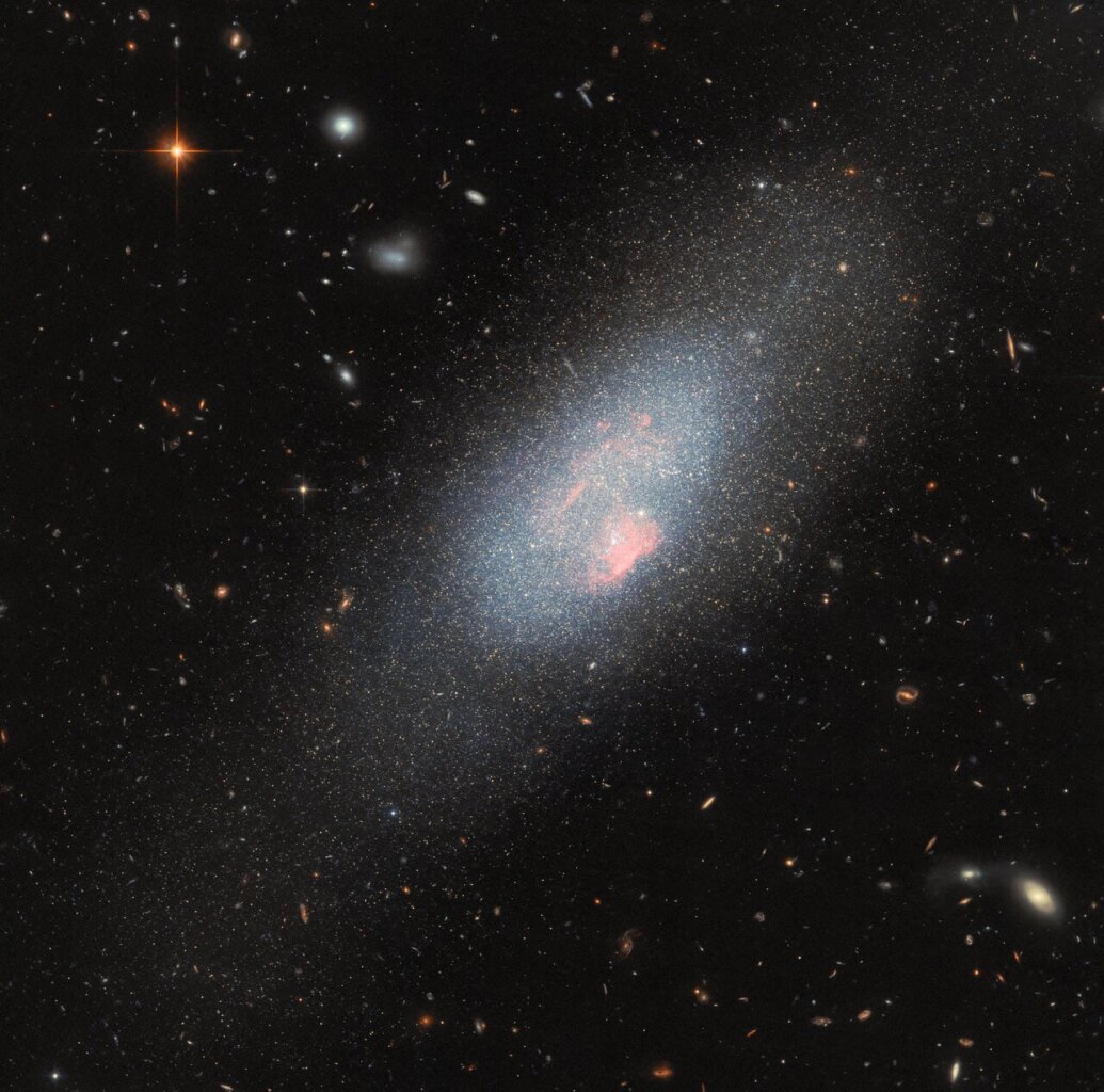 Naukowcy za pomocą Kosmicznego Teleskopu Hubble’a zobrazowali niebieską zwartą galaktykę karłowatą oznaczoną jako Markarian 178, znajdującą się w gwiazdozbiorze Wielkiej Niedźwiedzicy.