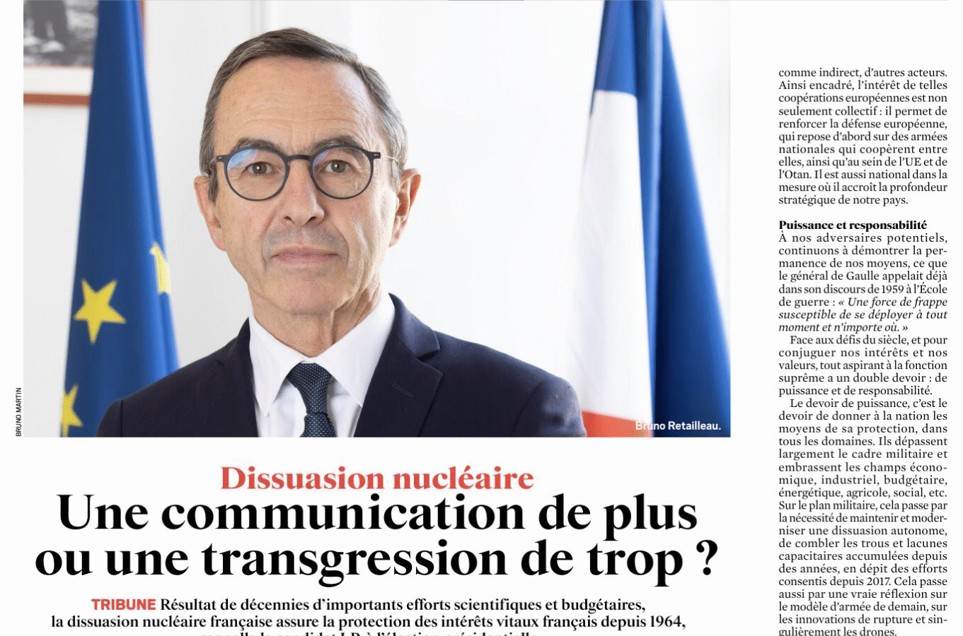 Bruno Retailleau w tekście opublikowanym w „Journal du Dimanche” zwraca uwagę na fakt, że francuskie odstraszanie nuklearne, owoc dziesięcioleci ogromnego wysiłku naukowego i budżetowego, od 1964 roku zapewnia ochronę żywotnych interesów Francji.