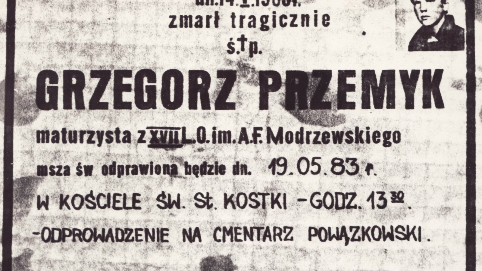 40 lat temu, 14 maja 1983 r., zmarł Grzegorz Przemyk, maturzysta dwa dni wcześniej skatowany w komisariacie MO przy Jezuickiej na warszawskiej Starówce. Bezpośrednią odpowiedzialność za jego śmierć ponosi grupa milicjantów. Bezkarność zapewniła im junta stanu wojennego, która bezwzględnie rozegrała tę tragedię.