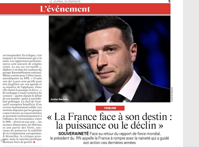 „Make Europe Great Again” [Jordan BARDELLA w JDD]