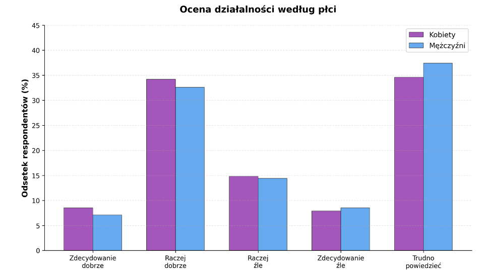 - Różnice w ocenach negatywnych są minimalne (22,7% kobiety vs 22,9% mężczyźni)