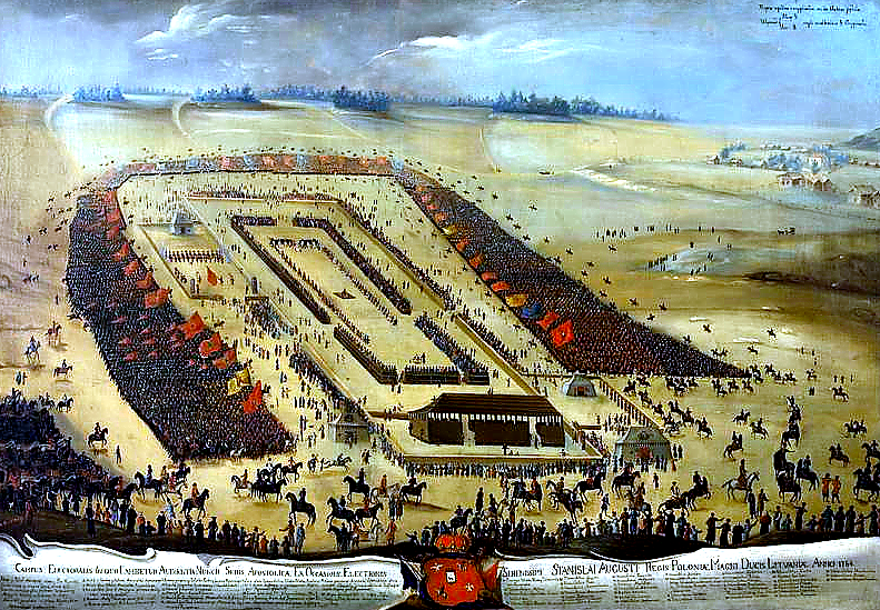 .Jak wyglądała modelowa procedura wolnej elekcji i samo głosowanie? „Elekcja odbywała się na specjalnie przygotowanym polu elekcyjnym, wokół którego usypywano wał ziemny, by zapewnić bezpieczeństwo obradującym. Wokół wału gromadziła się szlachta, która przybyła na elekcję. Zazwyczaj było to od kilku do kilkunastu tysięcy osób (dane mówiące o 50 tysiącach zgromadzonych podczas pierwszej wolnej elekcji są najprawdopodobniej przeszacowane). Głosujący dzielili się według województw i zajmowali miejsca w namiotach przeznaczonych dla swoich jednostek terytorialnych. Wewnątrz wału mieściła się tzw. szopa senatorska, w której obradowali najważniejsi dostojnicy państwowi, a także prostokątny plac, zwany kołem, gdzie senatorowie oraz delegaci poszczególnych województw (zawsze w równej liczbie) przyjmowali poselstwa zagraniczne i reprezentacje kandydatów do korony.