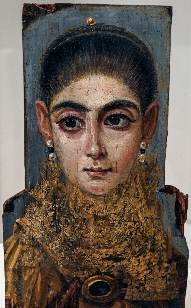 Zgodnie z szacunkami archeologów do tej pory zostało odkrytych przynajmniej ponad 900 tego typu wykonywanych na drewnie greko-rzymskich pogrzebowych obrazów trumiennych, przedstawiających zmarłych. Portrety te są określane jako greko-rzymskie, ponieważ z jednej strony zostały one wykonane właśnie w okresie gdy Egipt właśnie stanowił część Imperium Rzymskiego, a z drugiej strony z powodu tego, że wówczas ten starożytny kraj znajdował się pod silnym oddziaływaniem kultury greckiej.