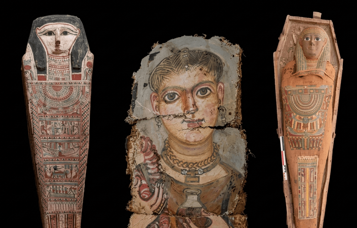 W odsłoniętym cztery lata temu wielkim budynku pogrzebowym sprzed 2300 lat naukowcy natrafili na cały szereg nowych portretów mumijnych, które poszerzają pokaźny już na ten moment zbiór pięknych i kunsztownie wykonanych portretów fajumskich liczących 2 tys. lat. Dzieła te zostały wykonane w późnych dekadach I wieku p.n.e. oraz we wczesnych dekadach I wieku n.e. – czyli w czasach, kiedy kraina faraonów nad Nilem wchodziła w skład Imperium Romanum.