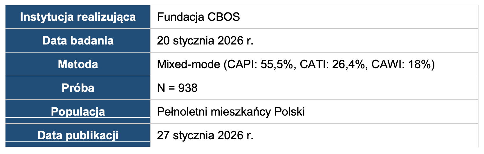 CBOS podkreśla, że styczniowy pomiar nie przynosi istotnych zmian w odbiorze działalności głównych instytucji politycznych. Pewne osłabienie notowań prezydenta Karola Nawrockiego nie pozwala jeszcze na formułowanie wniosków o trwałej zmianie tendencji.