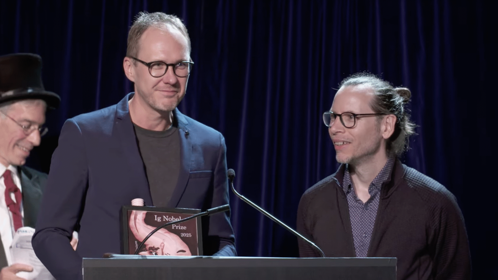Przyjmując statuetkę przedstawiającą ludzki żołądek z ludzkimi twarzami (tegoroczny motyw przewodni nagród to trawienie), naukowcy przeprowadzili na widowni żartobliwy eksperyment, który miał pokazać, że mówienie ludziom, że są inteligentni, wpływa na ich współczynnik narcyzmu.