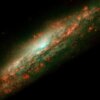 Naukowcy za pomocą Kosmicznego Teleskopu Hubble’a zobrazowali galaktykę spiralną z poprzeczką oznaczoną jako NGC 3079, znajdującą się w gwiazdozbiorze Wielkiej Niedźwiedzicy.