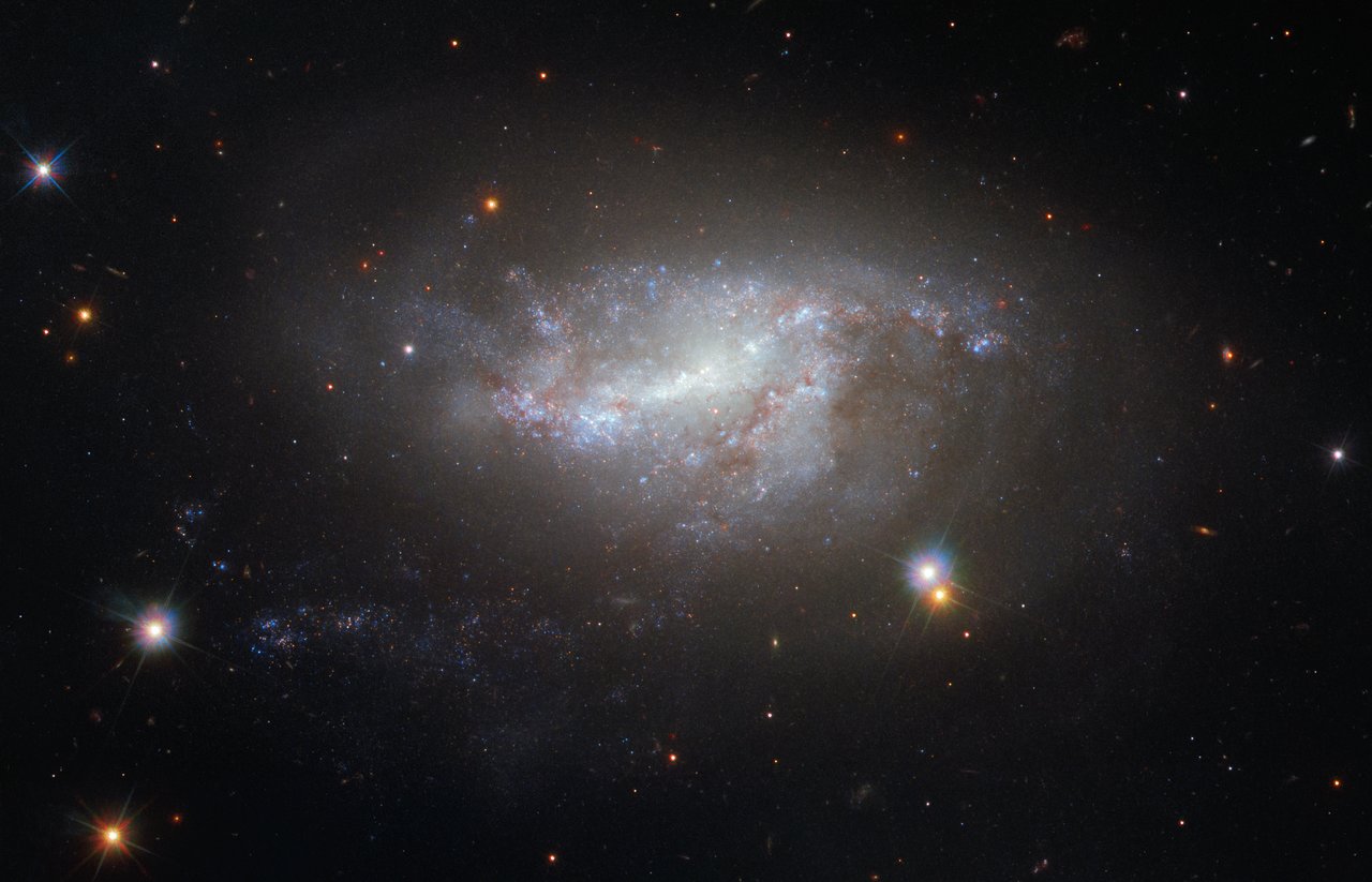 .To zdjęcie wykonane przez szerokokątną kamerę 3 (WFC3) teleskopu Hubble’a przedstawia spiralną galaktykę NGC 5917, znaną przede wszystkim z intrygujących interakcji z sąsiednią galaktyką MCG-01-39-003 (niewidoczną na zdjęciu, ale znajdującą się w prawym dolnym rogu kadru — jak widać tutaj).