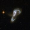.Jak tłumaczą badacze z ESA, na obrazie z Kosmicznego Teleskopu Hubble’a widoczna jest pada zderzających się galaktyk znana jako Markarian 848. Jest ona oddalona o około 550 milionów lat świetlnych od Układu Słonecznego i znajduje się w gwiazdozbiorze Wolarza.