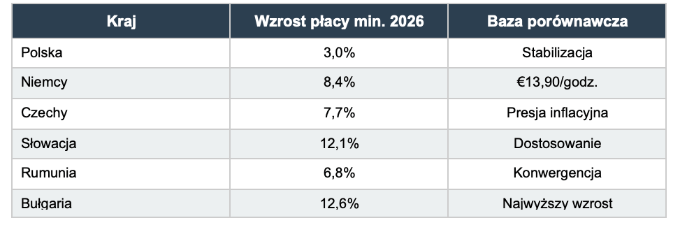 - Stabilizacja kosztów pracy: Wzrost płacy minimalnej o zaledwie 3% w 2026 roku (najniższy w regionie) zapewnia większą przewidywalność kosztów dla inwestorów.