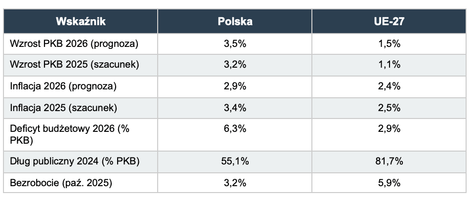 Wykres 1: Prognozowany wzrost PKB w 2026 roku (%) – Polska vs. UE-27