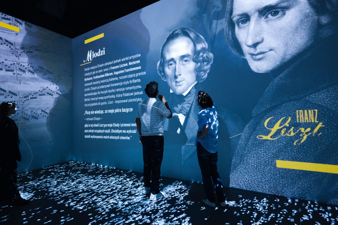 W sali VR przygotowanej przez studio Platige Image goście odbywają podróż od Paryża przez romantyczne krajobrazy nad Wisłą aż po symboliczny kosmos, gdzie muzyka Chopina nabiera zupełnie innego wymiaru.