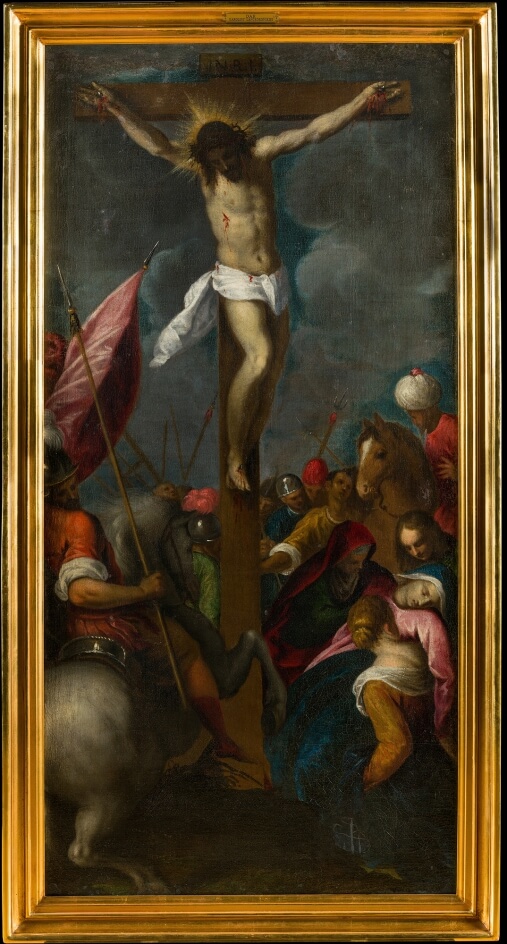 .Najbardziej dramatyczne wydarzenie Wielkiego Tygodnia – śmierć Chrystusa na krzyżu -podejmowało setki artystów renesansowych; wśród nich również Palma Młodszy (prawdziwe nazwisko Jacopo di Antonio Negretti: 1548–1628), który pochodził z rodziny o malarskich tradycjach. Dzięki księciu Urbino Guidobaldo II della Rovere studiował w Rzymie podziwiając twórczość Taddea i Federica Zuccarich. O tym jak wysoko ceniono jego talent świadczy m.in. to, że brał udział w dekorowaniu Pałacu Dożów w Wenecji. Ulegał wpływom rzymskiego manieryzmu, Tycjana, a następnie Tintoretta, po którego śmierci (1594) stał się najbardziej cenionym artystą weneckim. Niezwykle uzdolniony i pracowity, tworzył obrazy religijne, alegoryczne i mitologiczne. Jednym z klientów Palmy był król polski Zygmunt III Waza, który kupował jego obrazy do Zamku Królewskiego na Wawelu.