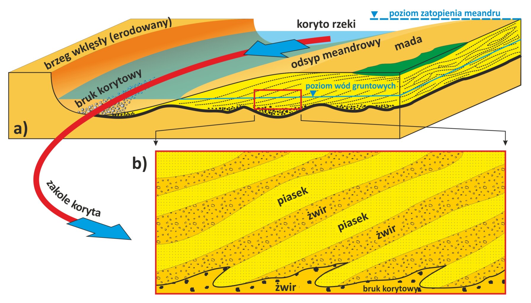Wysokość największego zatopienia dolin rzecznych na równinach aluwialnych wyznaczają wierzchołki tzw. odsypów meandrowych, jakie są zachowane w dolinach rzecznych (rys. 2.). Odsypy te w dojrzałej (kompletnej) strukturze są nadbudowywane zawsze w warunkach pełnego ich zatopienia wodami dolinnymi w okresach wezbraniowych.