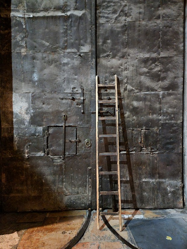.Podobne doświadczenia były i moim udziałem, gdy wzorem poety przepędziliśmy noc w Bazylice Grobu Świętego. Nie zapomnę ani rytuału zamknięcia odrzwi kościoła przy użyciu specjalnej drabiny, do które klucze od VII wieku ma rodzina Nusebeih. Potrzebna jest drabina, bo sam zamek do Bazyliki znajduje się bardzo wysoko, a otwiera oraz zamyka go od XII wieku mocą przywileju nadanego przez sułtana Saladyna inna arabska rodzina – Judeh. Drabina ta wciągana jest następnie przez klapę w drzwiach do wnętrza Bazyliki i od XVIII wieku znajduje się zawsze w tym samym miejscu pod oknem kościoła. Cała ta skomplikowana procedura jest częścią utrwalonego Status Quo pomiędzy poszczególnymi wyznaniami, które zostało nawet objęte patronatem UNESCO. Nawet niewielkie odstępstwa od Status Quo grożą wybuchem protestów i awantur między mnichami. Na przykład w 2020 r. wybuchła wściekła bójka, gdy koptyjski mnich przesunął swoje krzesło zasłaniając pole widzenia mnicha etiopskiego.