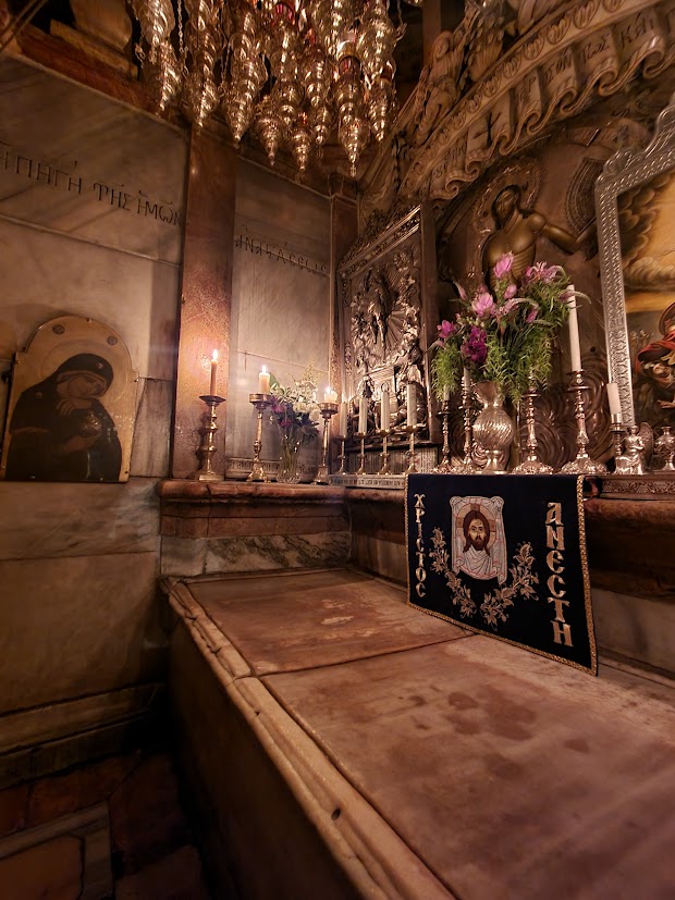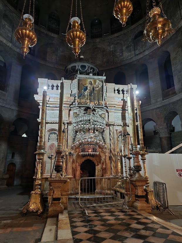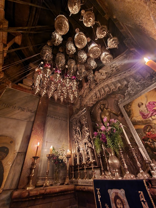 .Nigdy też, podobnie jak Juliusz Słowacki, nie zapomnę kolejnych nabożeństw w różnych rytach w Edykule Grobu Pańskiego położonej w starodawnej rotundzie zwanej Anastasis, jak i zakonników rożnych odłamów chrześcijaństwa wędrujących po Bazylice i pozdrawiających się nawzajem machaniem kadzielnic. Wszystko to napełniło nasze serca jakąś prostotą i świętością, by strawestować samego Słowackiego. Poeta zatrzymał się później jeszcze na sześć tygodni w ormiańskim klasztorze św. Antoniego (Betcheszban) w Ghazir pod Bejrutem i tamże napisał swe arcydzieło, poemat „Anhelli” zainspirowany właśnie nocą spędzoną przy grobie Chrystusowym.