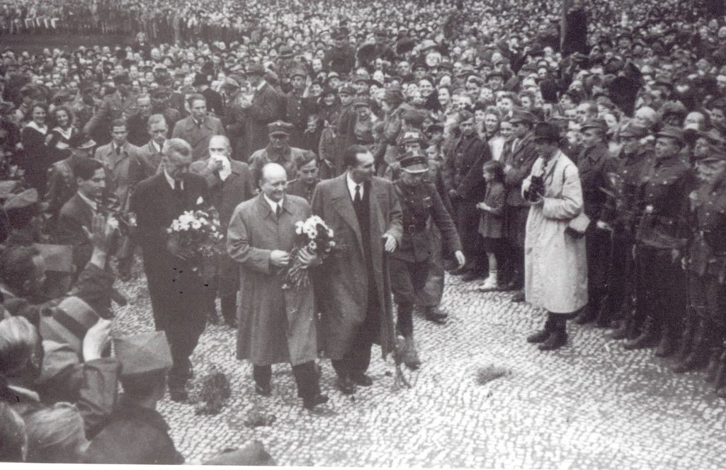 Вітання Станіслава Миколайчика в Познані після його повернення з еміграції в Лондоні, червень 1945 року.